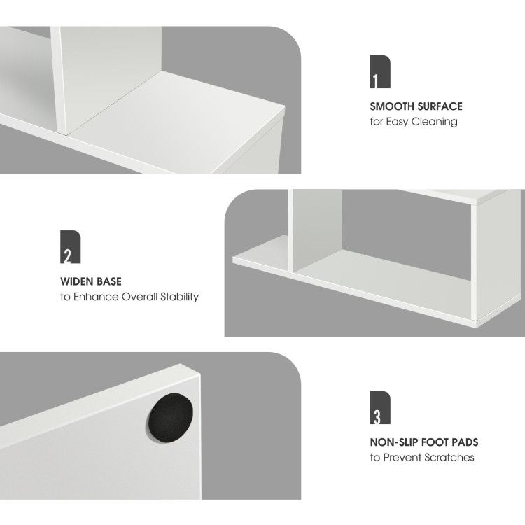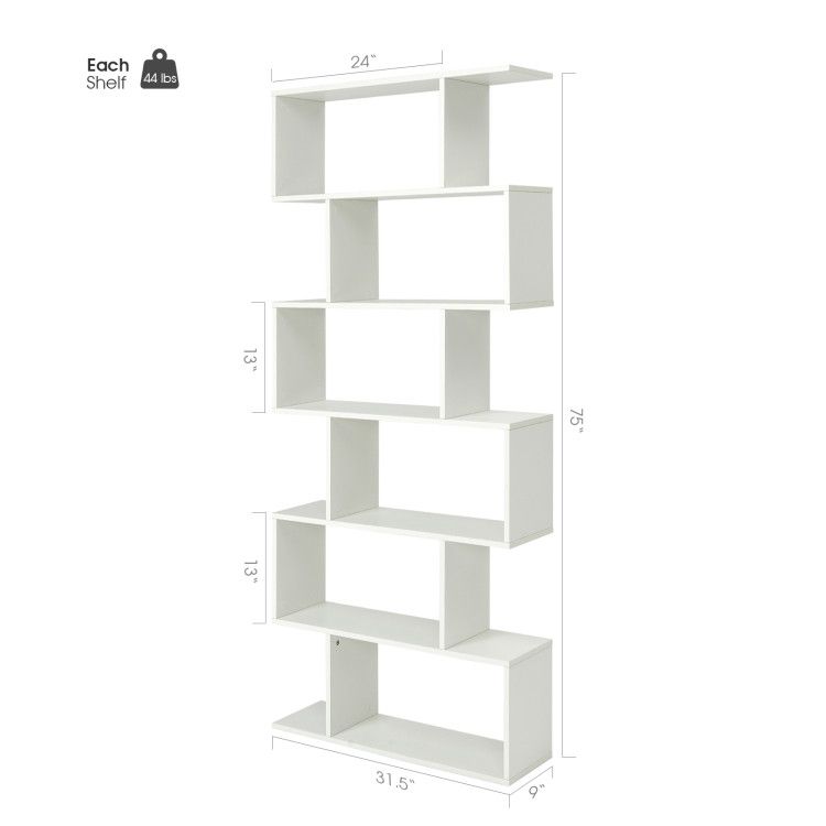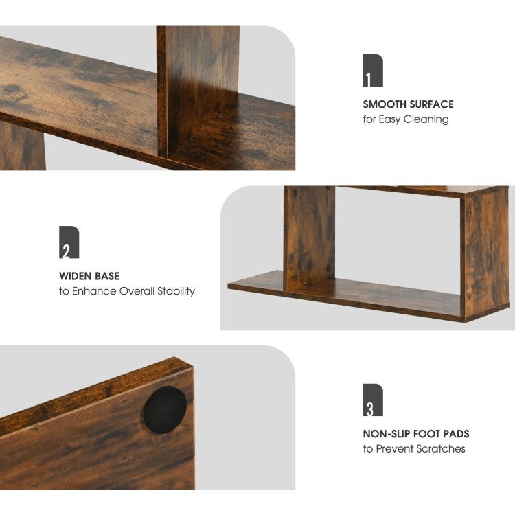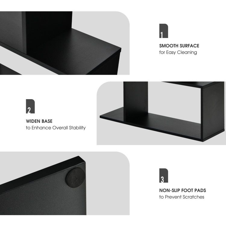 2.S-shaped Design and Wide Application: This bookshelf also serves well as a decoration with its S-shaped design and stylish color. It perfectly fits into any furnishing style and makes a great addition to your home or office. If needed, this bookcase can turn into a room divider in the living room or storage cabinet in the kitchen.