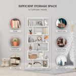 3.Sturdy Wooden Construction: This free-standing bookshelf has a long lifespan and steady performance. It is constructed from premium engineered wood and designed in a stable structure. The bottom plate is widened to add stability. And each shelf can bear up to 44lbs to satisfy your needs.