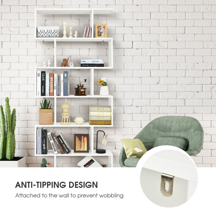 4.Anti-tilting Design for Safety: When set against the wall, the 6-tier bookshelf can be fixed with an anti-tilting anchor in case of any wobbling or collapsing due to heavy loading or collision. Thus, this bookshelf is more stable than other shelves and is more suitable for families with children.