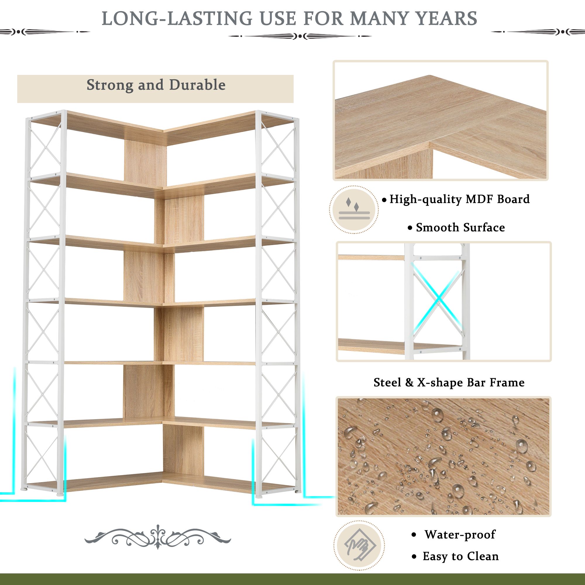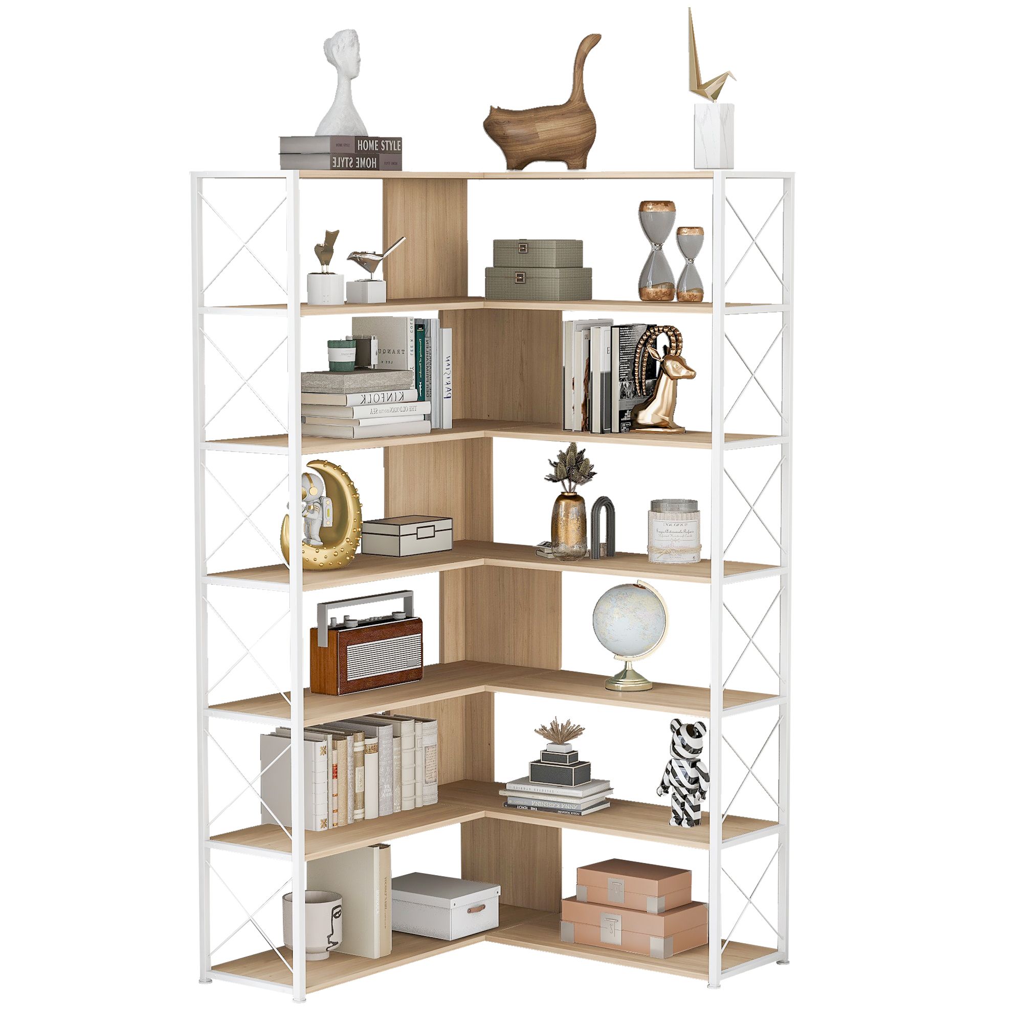 7-Tier Bookcase Home Office Bookshelf, L-Shaped Corner Bookcase with Metal Frame, Industrial Style Shelf with Open Storage, MDF Board
