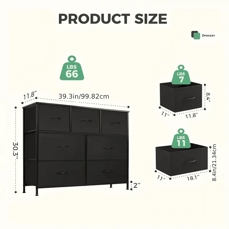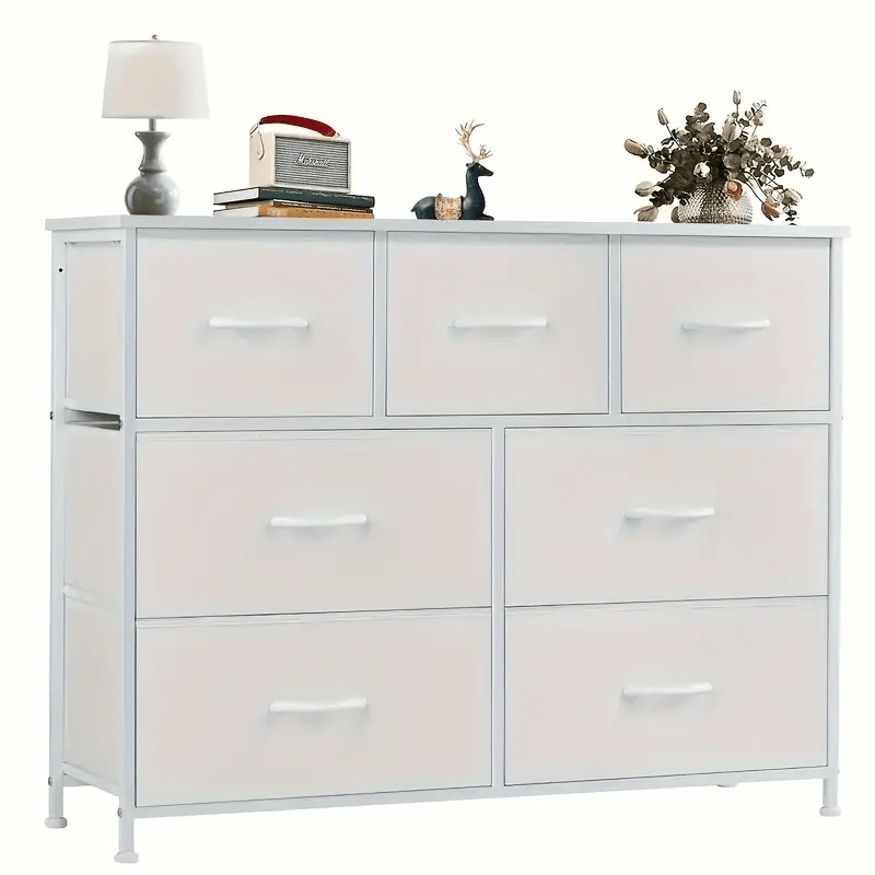 1.Bedroom dresser, storage drawer, TV cabinet Fabric storage tower with 7 drawers, Chest of drawers with fabric box, Wooden countertop for TV under 45", Children's room