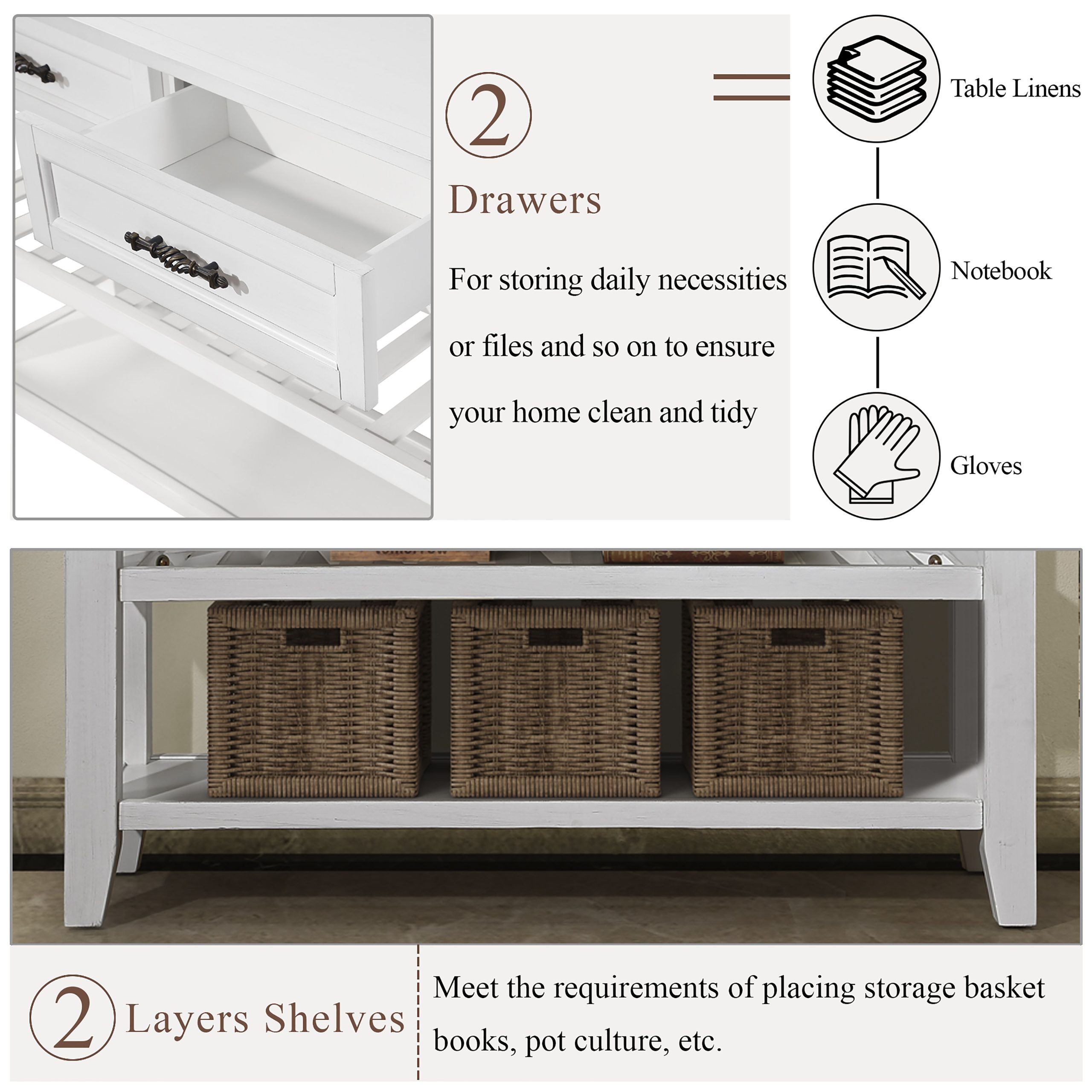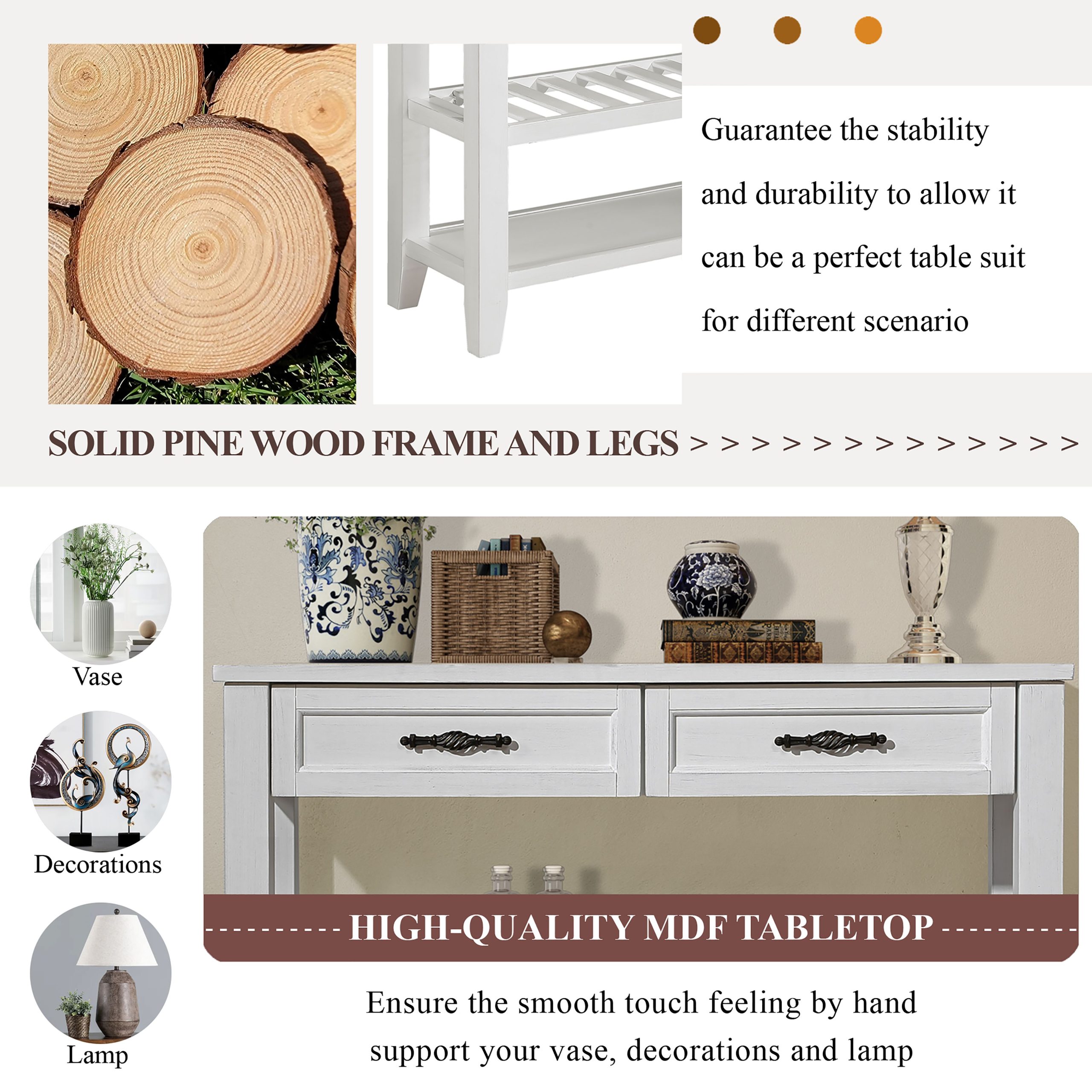 [Sturdy Stable Construction] This buffet table is mainly made of solid wood frame and MDF panels, features selected material and great durability. This antique console table with drawers and shelves features superior construction, stable and durable, offering reliable strength for long-term use.