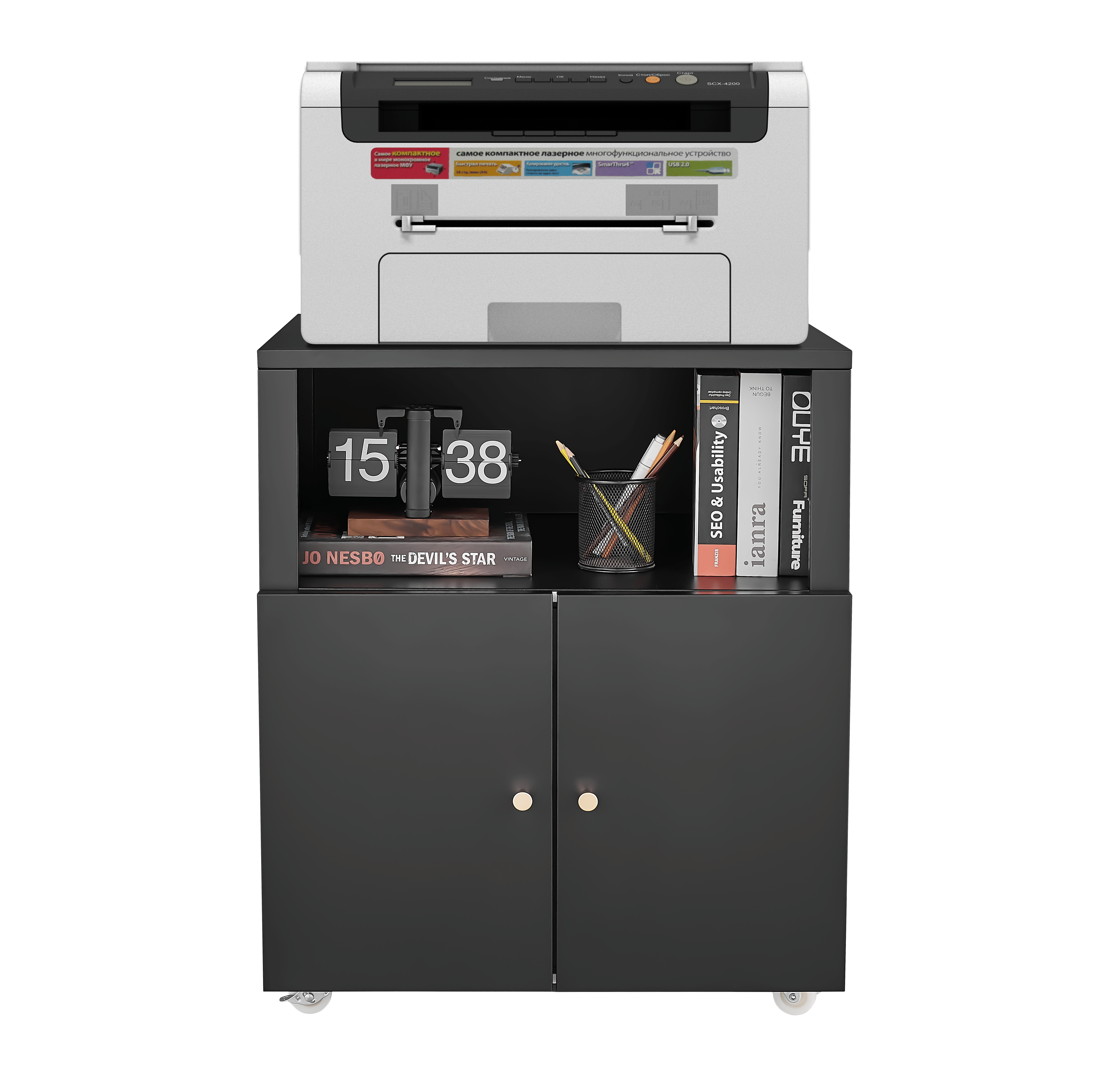 This rolling printer stand featured with a door, which allow convenient file access and add security that keep your business private. The open shelves is great to storage and display for binders, folders, books, furnishing articles or decor. You can also adjust the shelves height as your different needs.