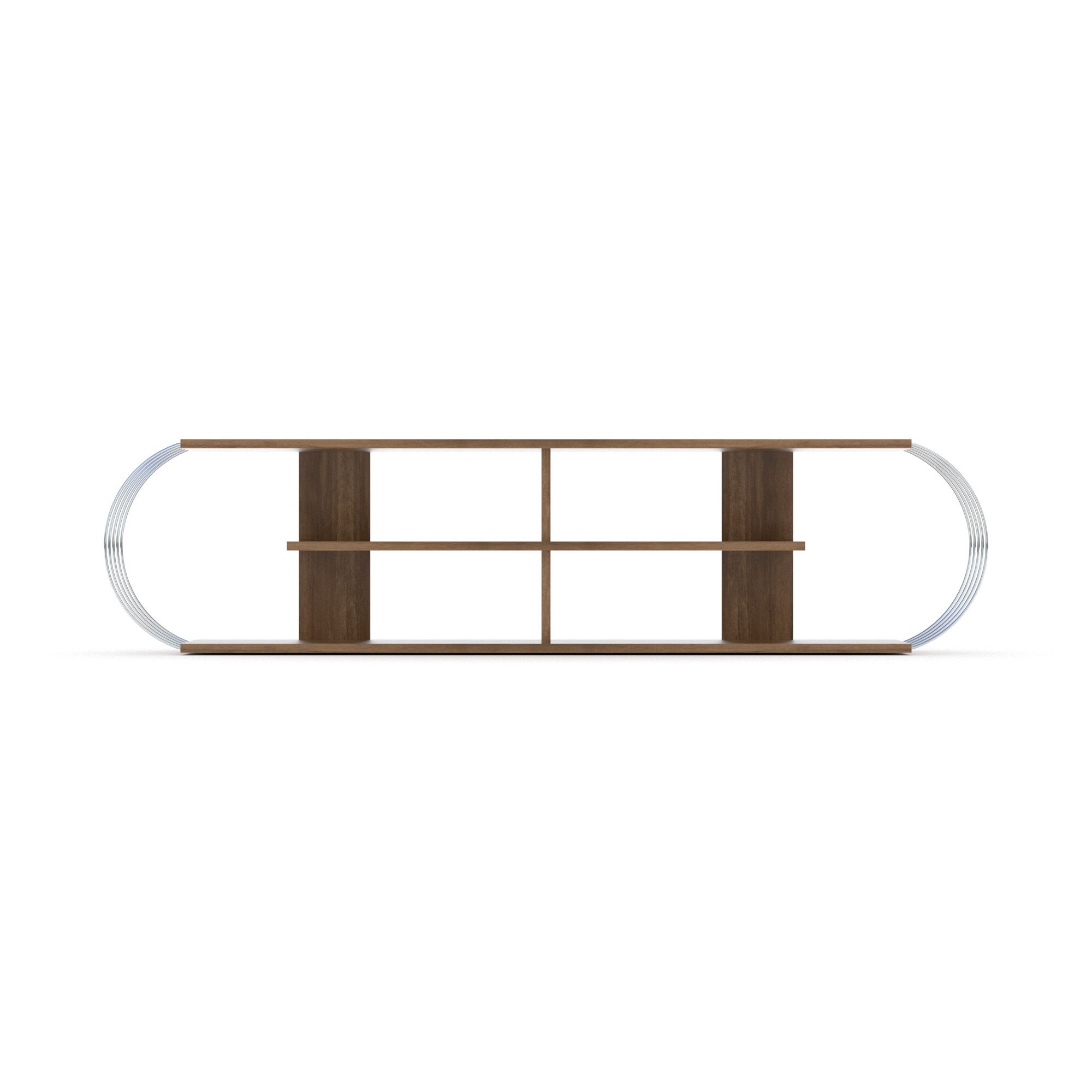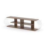The mid century modern design of this wooden TV Stand will change the mood in your living rooms. High quality melamine coated chipboard and colorful curved metal edges combine to bring elegance to your living rooms. 4 shelves under the unit provides huge space your media entertainment and books. Cable management is also available to easily connect your devices to your television. With the color alternatives and elegant design it is suitable for every room. All of our products are being manufactured with ultimate care and ensured to be quality checked for best customer experience and satisfaction. Dimensions: 68" W 16.5" H 12" D