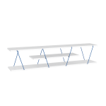 FurnisHome Store Tars Mid Century Modern Tv Stand 4 Shelves Open Storage Metal Cords Entertainment Centre 56 inch Low Tv Unit, White Blue