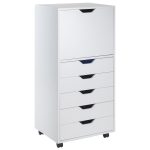 Use the Winsome Wood Halifax 5-Drawer High Cabinet for a variety of organizational needs. A clean; simple design that you will find function to in just about any room of your home. Eliminate the appearance of clutter in your bedroom; craft room; dorm; kitchen or office. The Halifax storage carts feature a multitude of drawers with cutout drawer pulls that allow for easy-open access and helps create an easily accessible storage unit. Store paper and other material used for a business in your in-home office or den. A ideal storage addition to your walk-in closet; with 5 easy glide drawers with an interior dimension of 15.9'W x 11.8'D x 2.6'H perfect for jewelry; styling accessories; makeup pallet and brushes. The upper cabinet has a spacious interior of 17.95"W x 14.65"D x 14.57"H; suitable for slightly larger items or linens. Sitting on four casters; two of which lock; allowing for easy mobility when needing to move or locking in place to use as a stationary. Constructed of sturdy composite wood in a white finish that is sure to blend with any decor. For additional storage; pair with other organizers from the Winsome Halifax collection. This item conveniently ships in 1 box and is ready for assembly. Replacement part request can be submitted directly to the manufacturer within 60 days from date of purchase.Overall dimensions: 41.4"H x 19.2"W x 15.9"DDrawer inside dimension 15.9"W x 11.8"D x 2.6"HIf casters are used; 2.2" is clearance between floor and bottom of cartAssembly requiredShips in 1 box