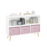 Kids bookcase with Collapsible Fabric Drawers, Children's Book Display, Toy Storage Cabinet Organizer, White/Pink