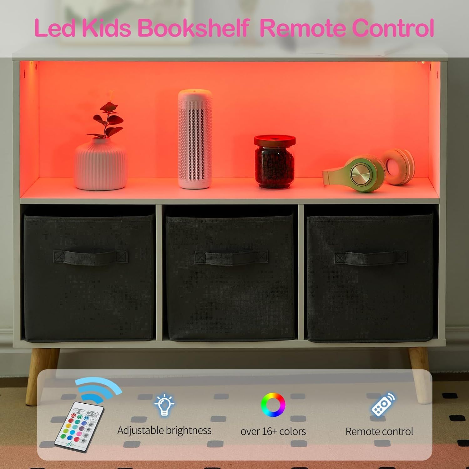 LED Kids Bookshelf and Toy Storage, Kids Bookcase with Storage, Kids Toy Storage Organizer, Bookshelf for Kids, Book Shelf for Kids Rooms and Bedroom,Kids Room Organizers and Storage(Grey)