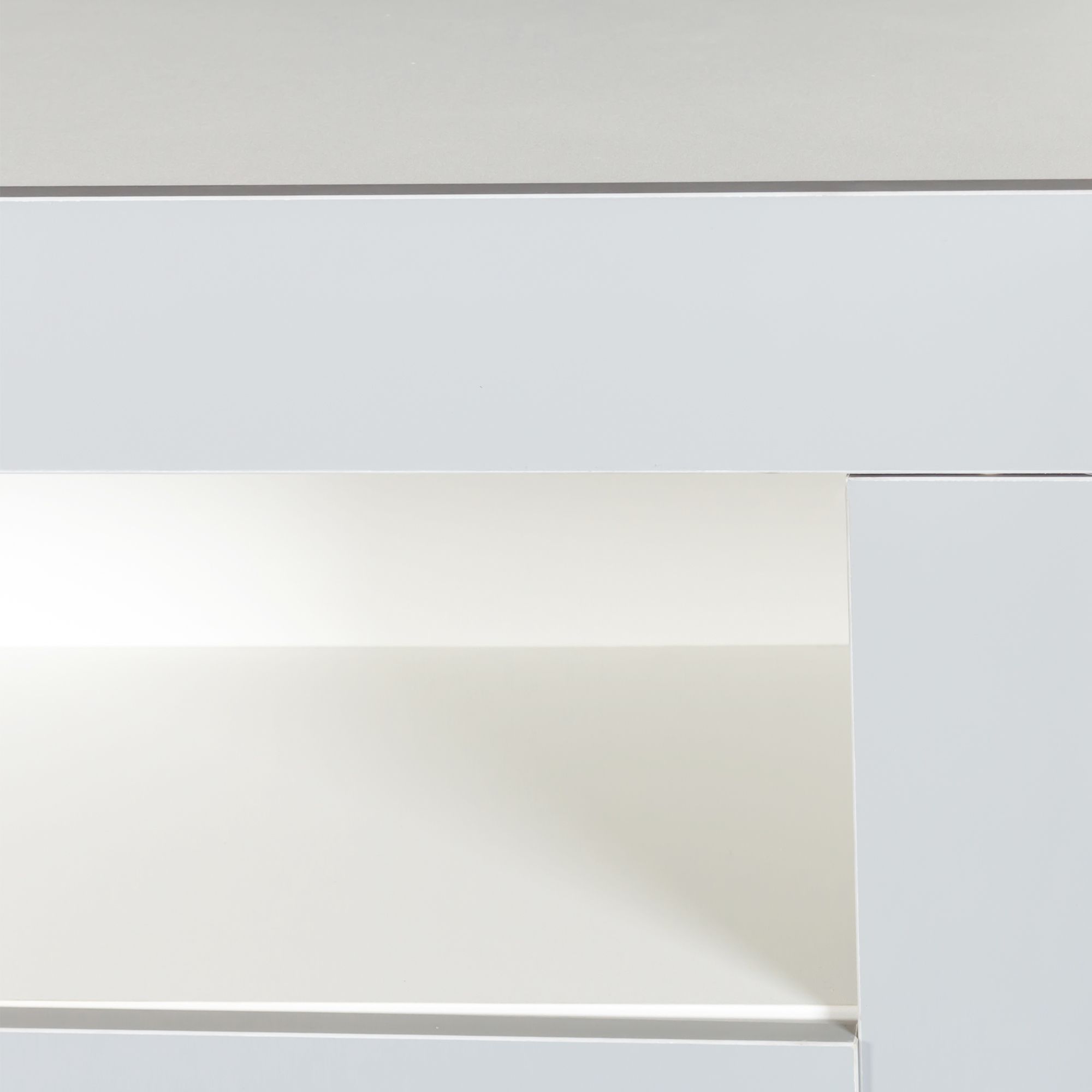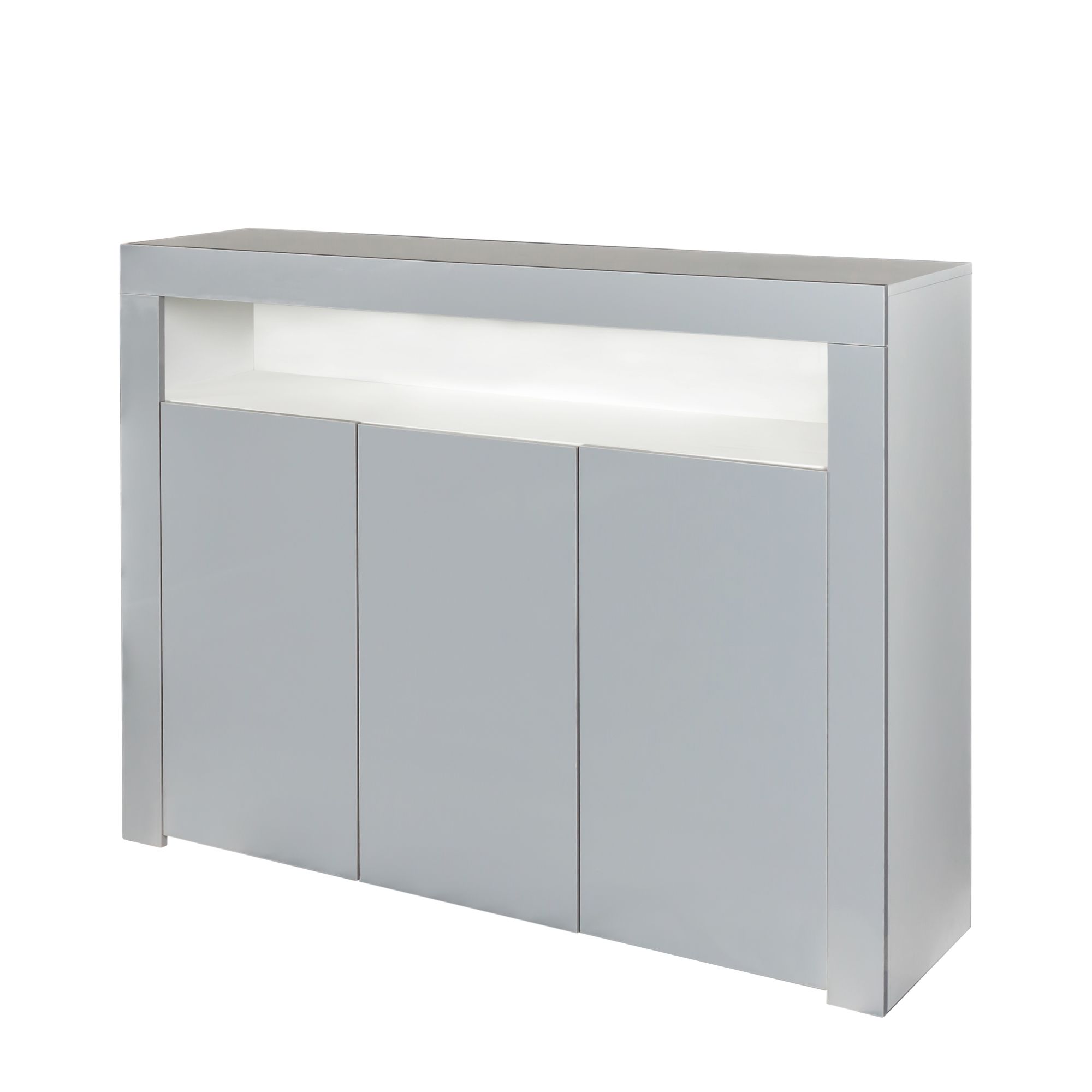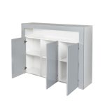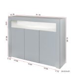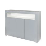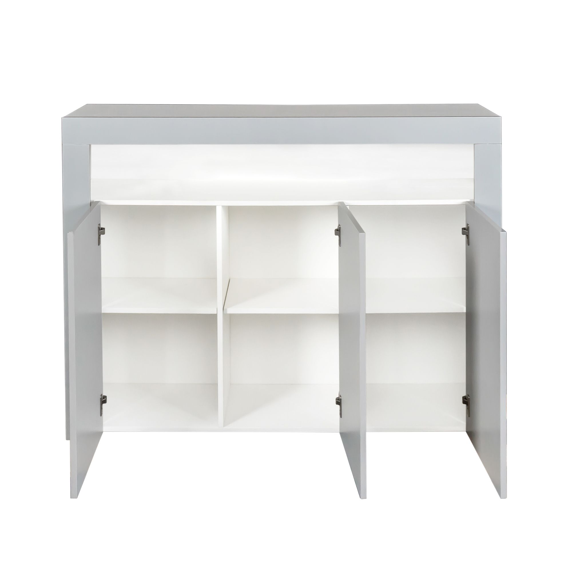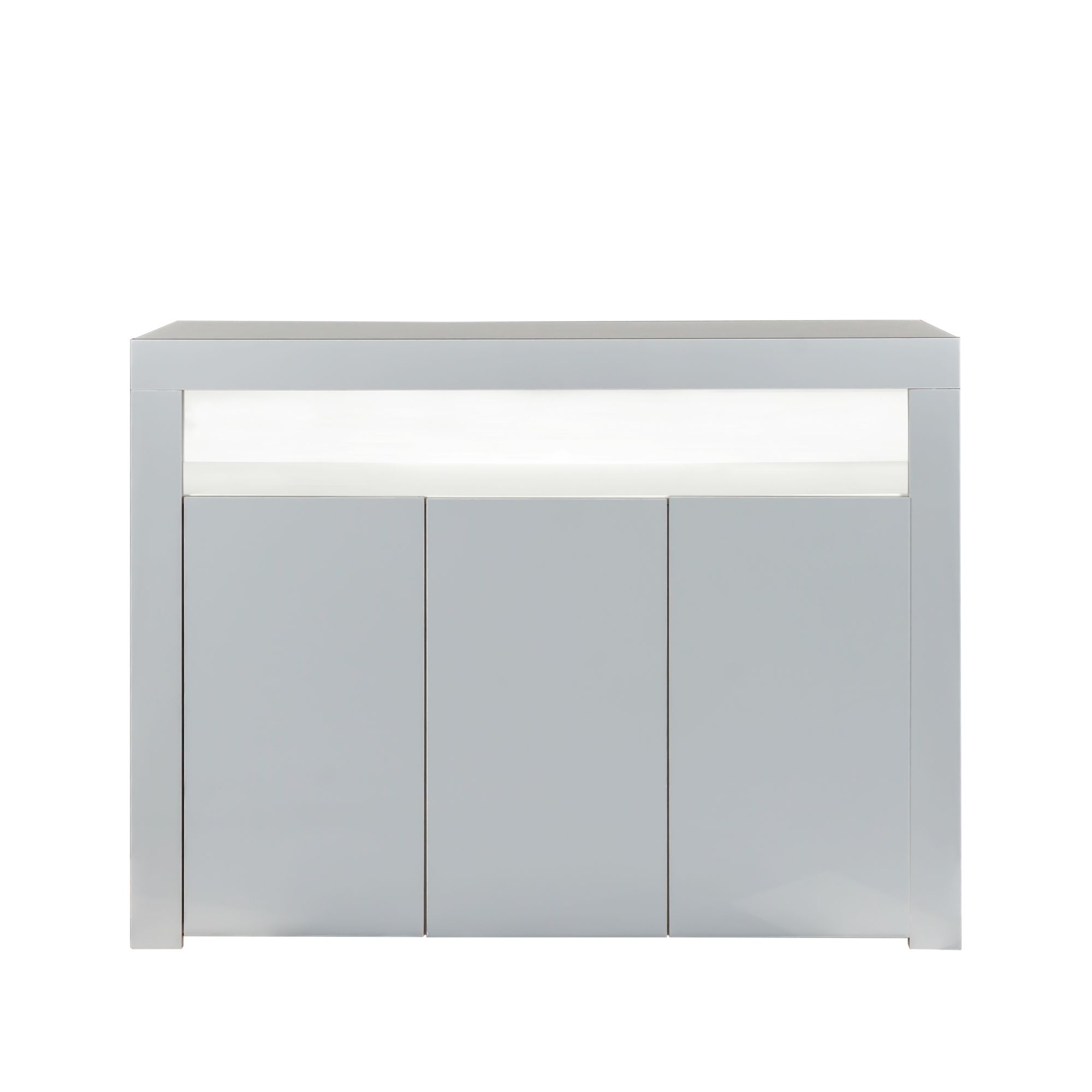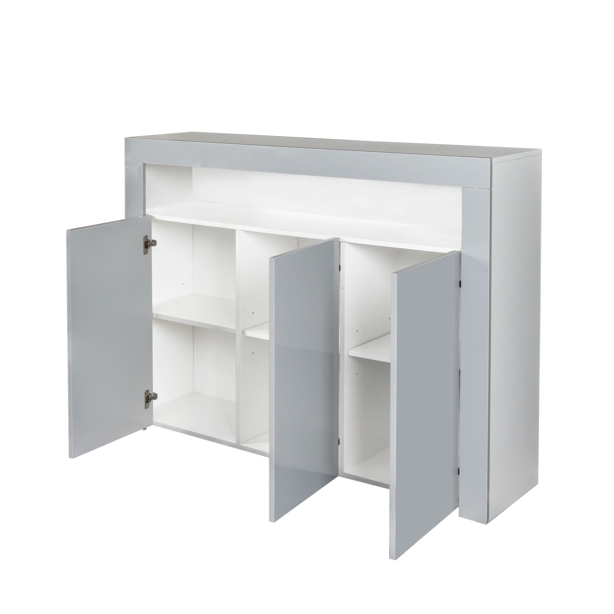 Wooden Sideboard with LED Light: 130cm/51.2(L)×35cm/13.8(W)×97cm/38.2(H), this utility 3 doors sideboard storage cabinet with open cubby space and concealed shelves designed to store household unit, space utilization and prevent dust Multipurpose LED Kitchen Cupboard Storage Buffet: the LED sideboard with multi-colour LED lights, 16 kinds of monochrome and 4 kinds of color change, can change the color of the display through the remote control. Modern Stylish Wood High Gloss Sideboard: this wooden sideboard is made of 16mm E1 particleboard, the LED unit cupboard cabinet is high gloss effect finish to the front of the unit (including doors and front panels); the rest of the body in a matt finish, contemporary and stylish Multifunctional Sideboard Storage Cabinet for Home: this utility LED unit storage cabinet is best choice for living room, bedroom, hallway, small dinette, also could be used as tv stand table, office tea room cabinet Assemble Needed: this utility sideboard required to put together, the installation instruction will come with the parcel, the sideboard will dispatch with 2 parcel, stylish for any apartment, office decoration. Material:Material is 15mm particle bpard,back board is 3mm MDF.Made of wooden structure with melamine finish for durability and easy maintenance. Aufgrund des Lichts oder der Anzeige kann die Farbe des tatsächlichen Produkts geringfügig vom Bild abweichen.