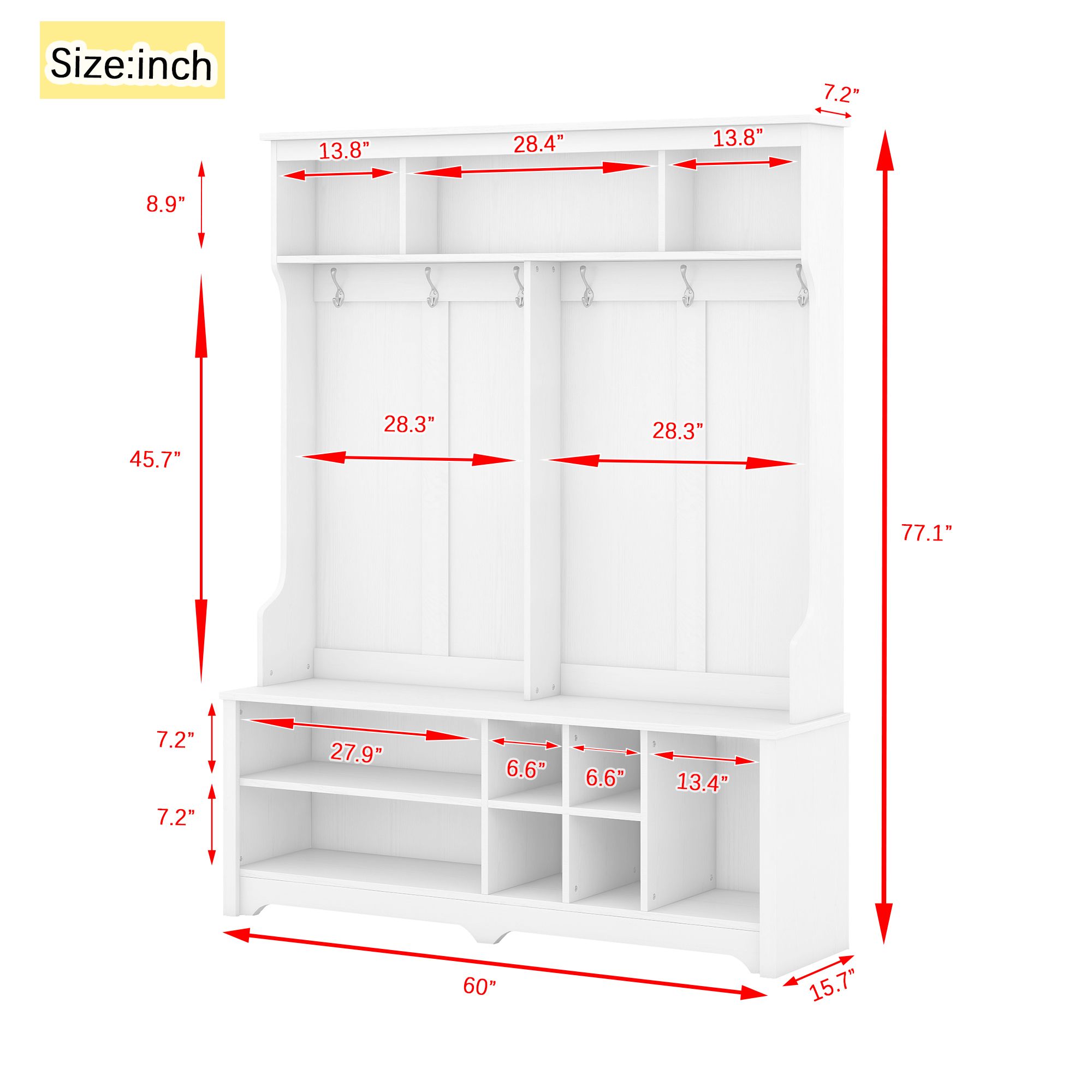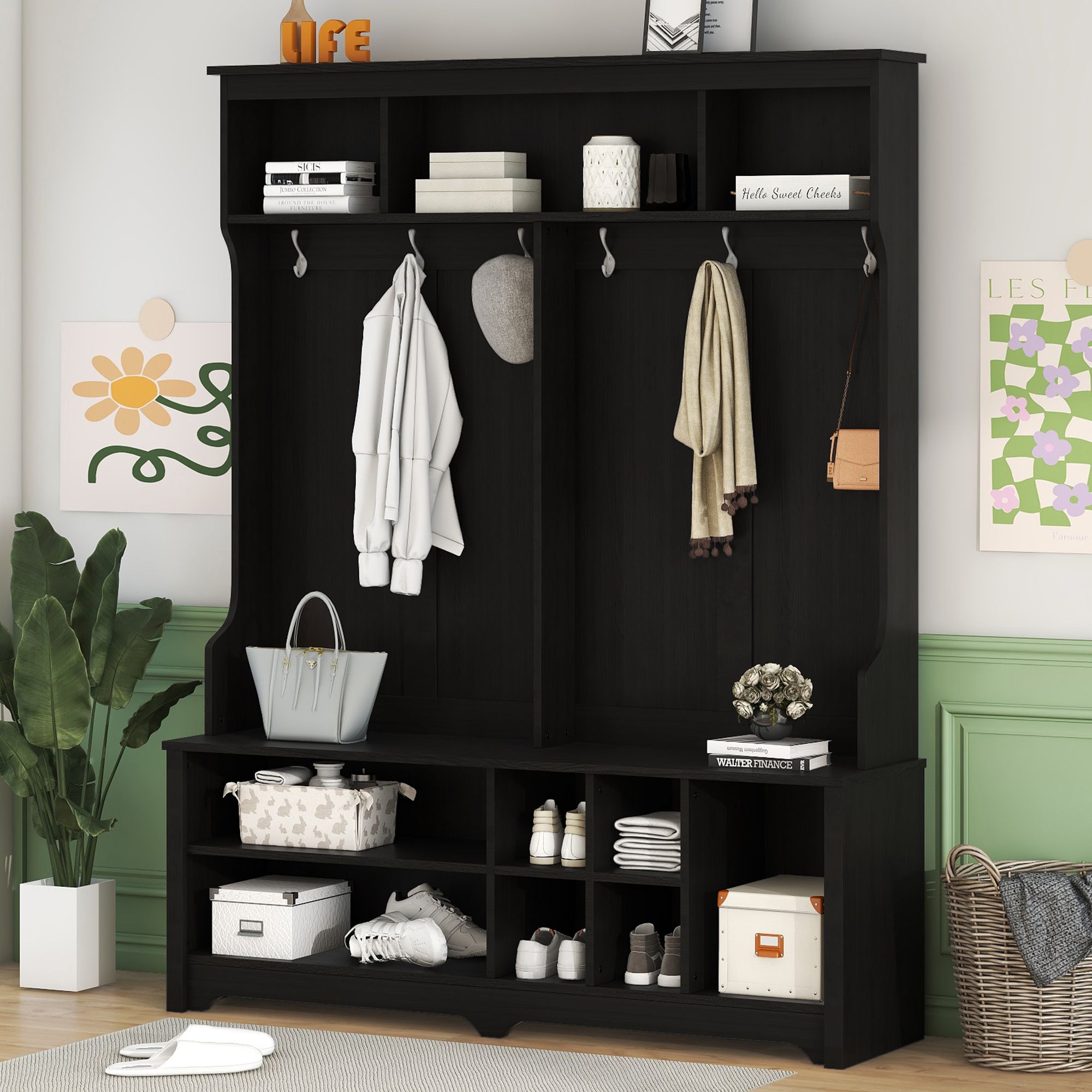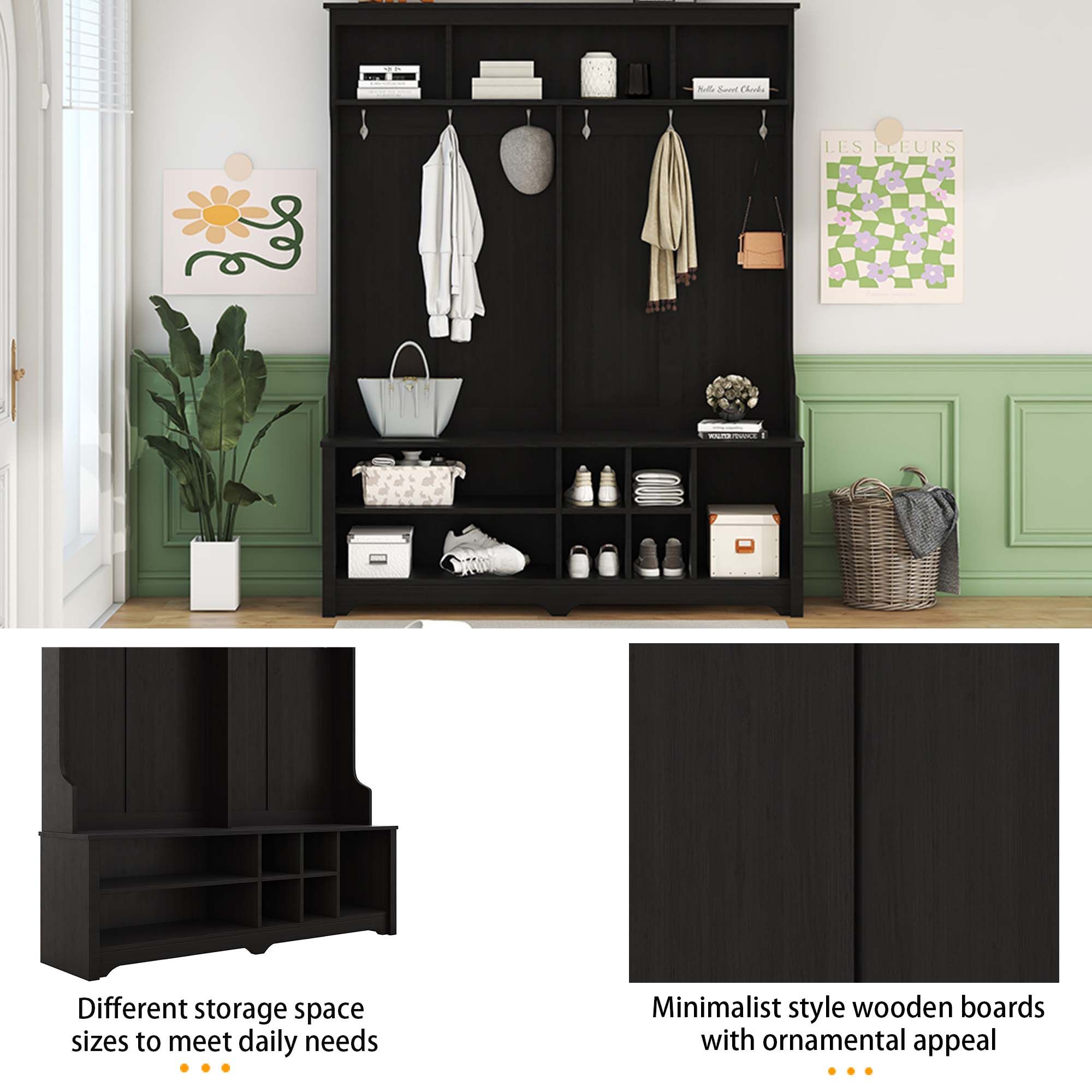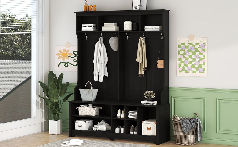 Available in black and white, offer different choices according to your preference or house style. Multi-functional hall tree, with different storage functions to meet different needs. Quality materials ensure stability and durability. The anti-dumping device ensures the safety of use.