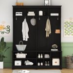 Be the first to review “Modern Hallway Hall Tree with Metal Hooks and Storage Space, Multi-Functional Entryway Coat Rack with Shoe Cubbies”