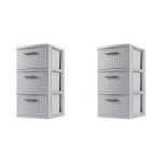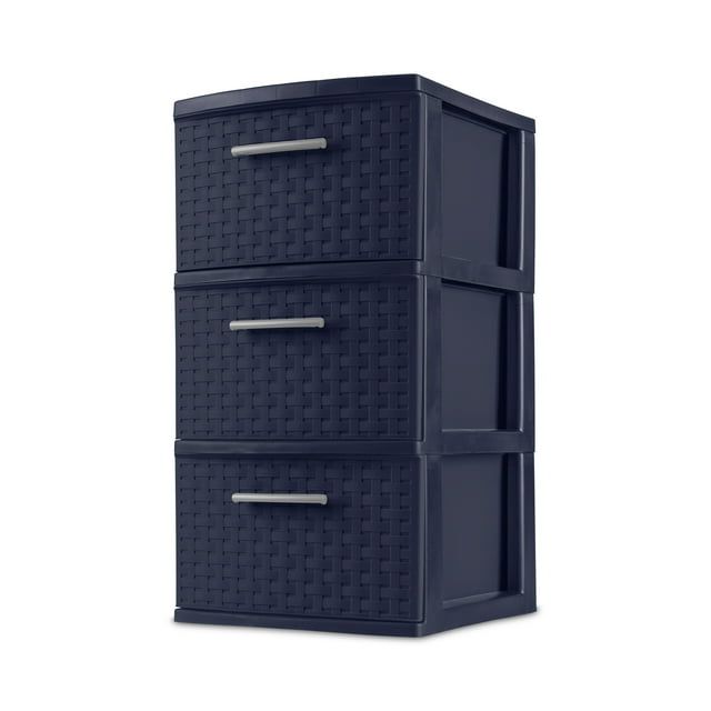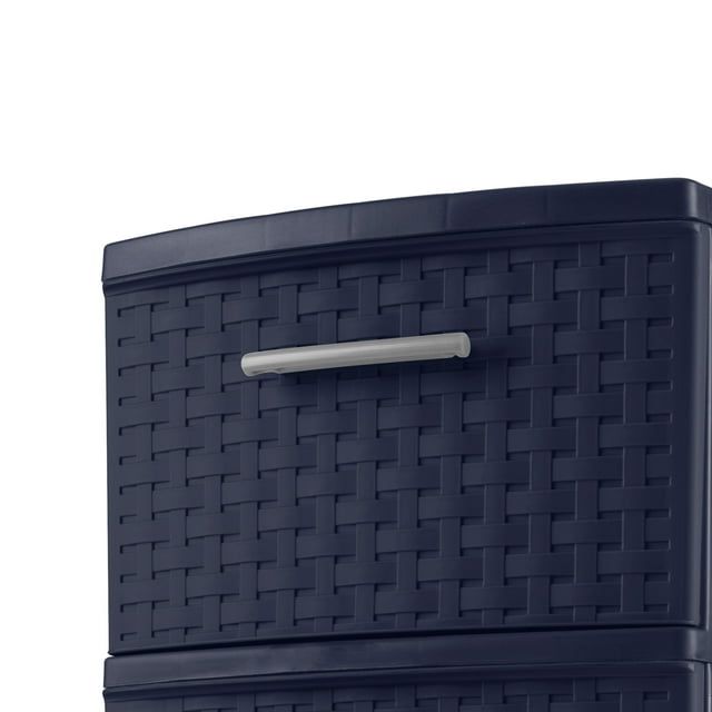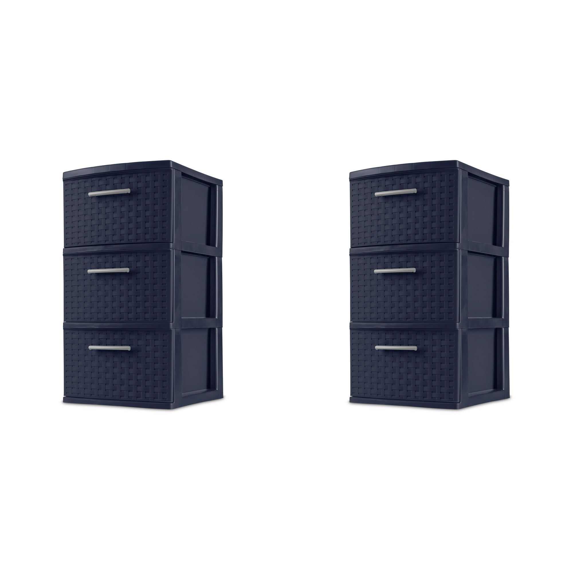 Plastic 3 Drawer Weave Tower Blue Cove Set of 2
